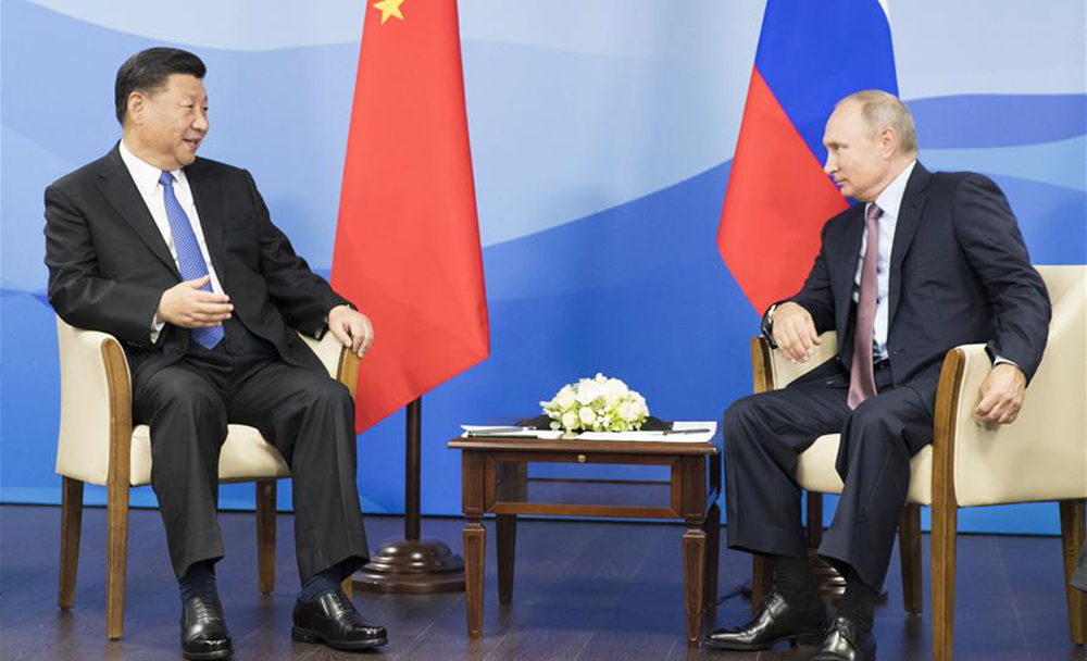 Chinese President Xi Jinping and his Russian counterpart, Vladimir Putin, expressed their firm determination to promote bilateral ties and safeguard world peace and stability during their talks here on Tuesday.
