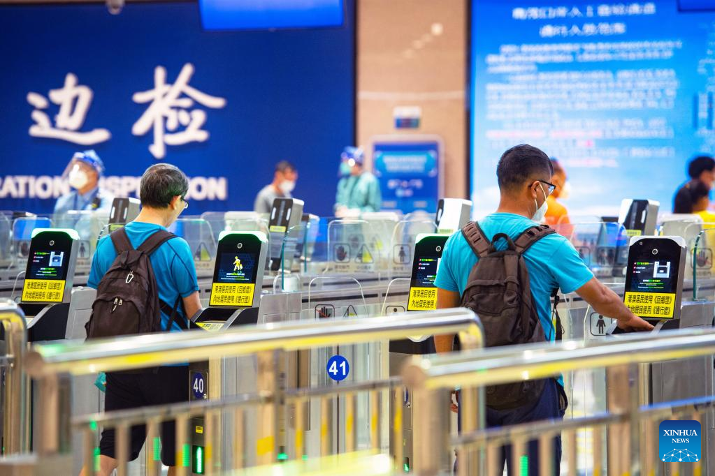 People walk through automated gateways in the hall of Macao Immigration Inspection in Macao, south China, Aug. 3, 2022.…