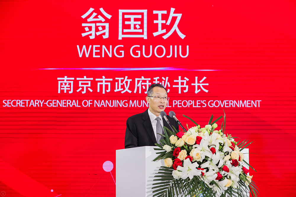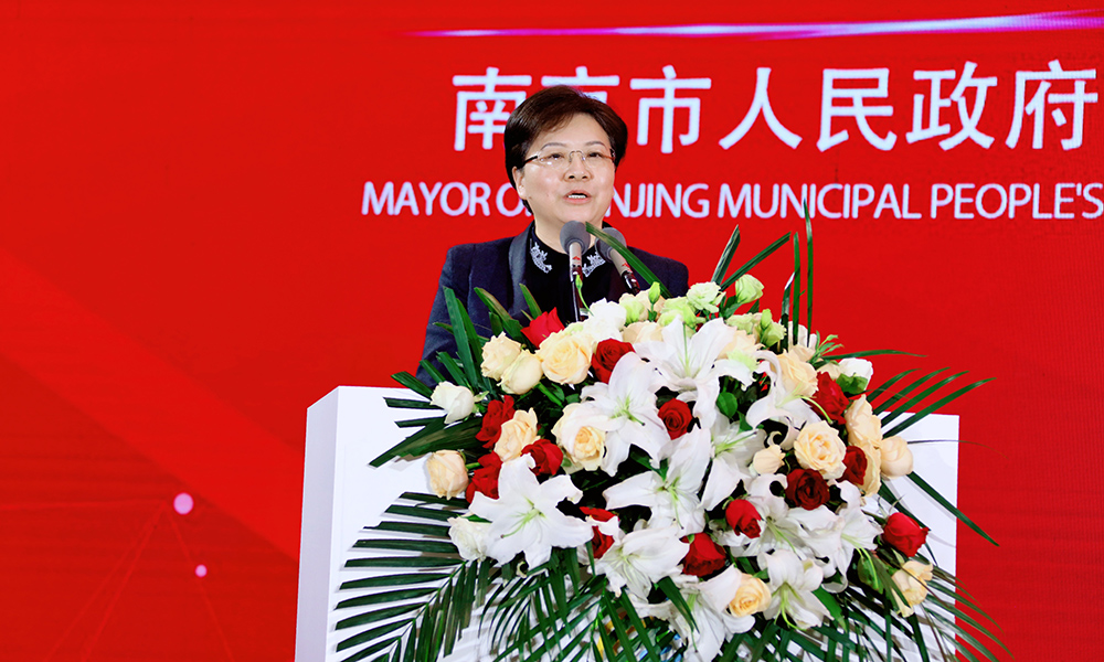 Han Liming, mayor of the Nanjing Municipal People's Government, delivers a speech at the Conference on Promoting the Construction of Manufacturing High-quality Development Pilot Zone in Lishui, Nanjing, March 24, 2020. (Photo/Geng Zhichao)