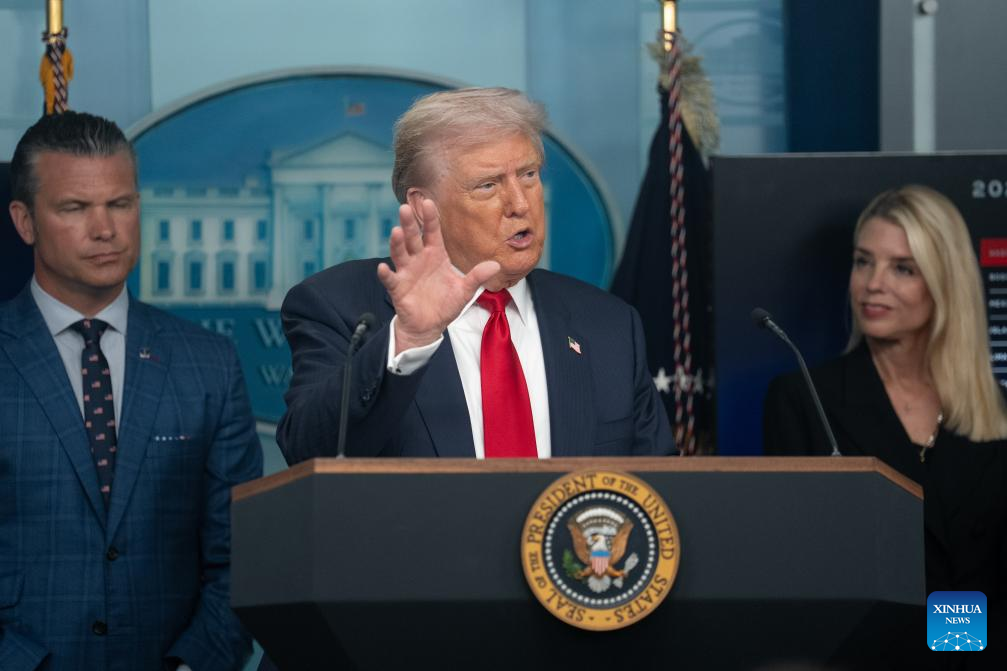 U.S. President Donald Trump (C) speaks during a press conference at the White House in Washington, D.C., the United States, on Aug. 11, 2025. Trump sa…[More]