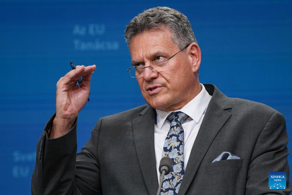 EU trade chief Maros Sefcovic attends a joint press conference in Brussels, Belgium, July 14, 2025. Danish Foreign Minister Lars Lokke Rasmussen conde…[More]
