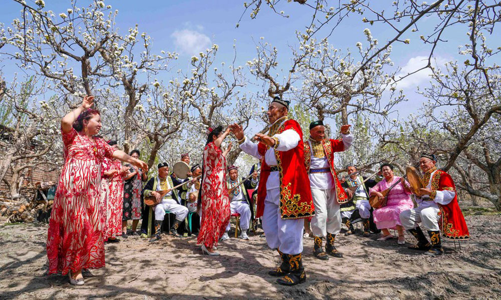 Elderly people from different ethnic groups pose for a group photo at the Hu'erjia Cultural Compound in Altay, Xinjiang Uygur autonomous region, on Sept 9. The compound is a significant cultural and historical site that embodies multicultural integration and ethnic harmony in Xinjiang.…
