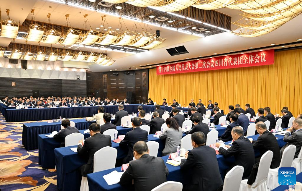 A group meeting of deputies from the delegation of Sichuan Province is held at the second session of the 14th National People's Congress (NPC) in Beijing, capital of China, March 10, 2024. (Xinhua/Mu Yu)
