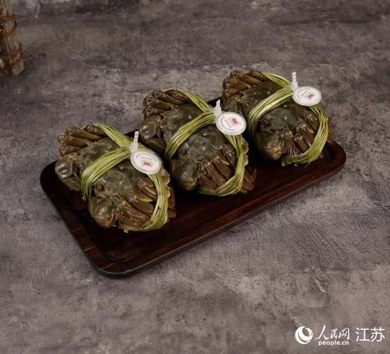 Photo shows Gucheng Lake crabs with traceability tags. (People's Daily Online/Wang Dandan) At 5 a.…