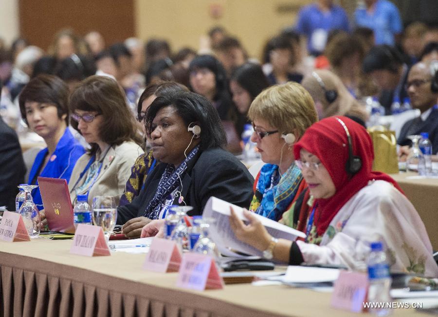 Representatives listen to a speech at the 2014 APEC Women and The Economy Forum in Beijing, capital of China, May 22, 2014. (Xinhua/Wang Ye)