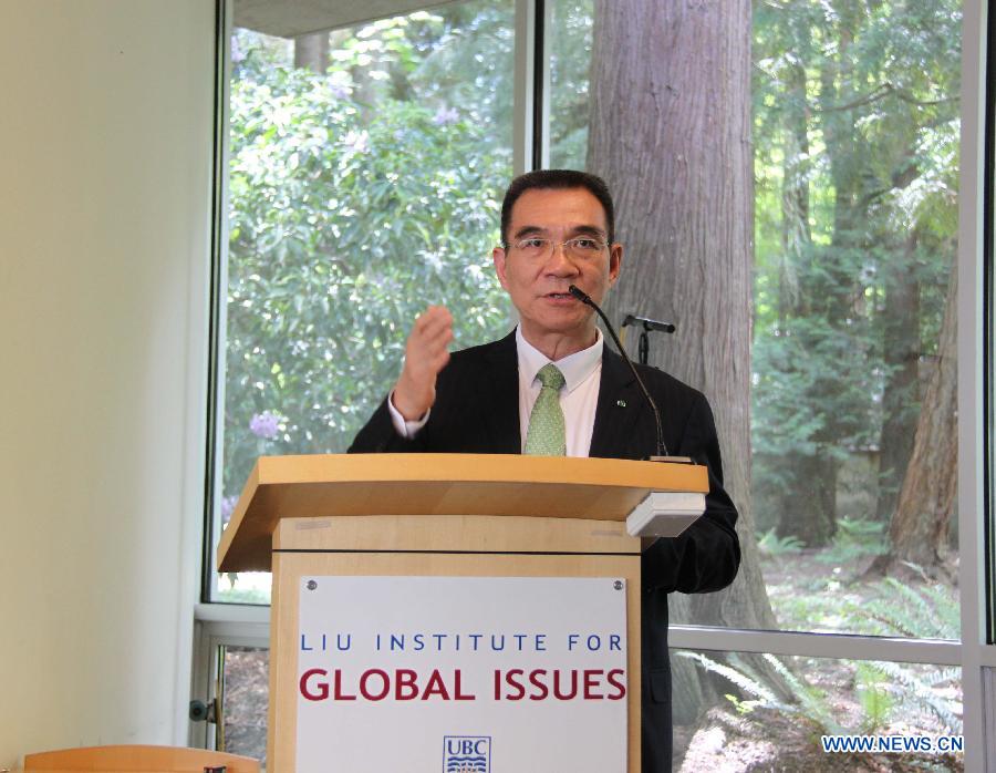 Chinese economist and professor of Peking University Justin Yifu Lin speaks at University of British Columbia in Vancouver, Canada, on May 26, 2014. Lin Yifu gave a lecture here Monday and said that China would maintain its high-speed economic developing in 20 years and the development benefits the world. (Xinhua/Jiang Yaping) |