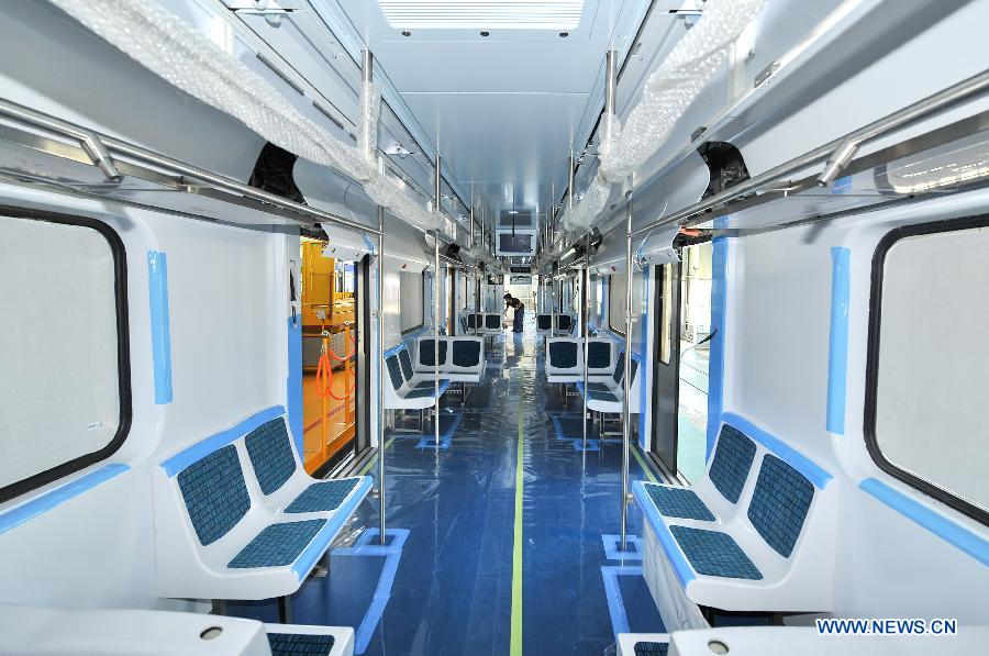 A worker assembles an EMU train to be sold to Brazil in a factory of CNR Changchun Railway Vehicles, a train manufacturer, in Changchun, capital of northeast China's Jilin Province, July 9, 2014. The Chinese company is making EMU trains for customers in Brazil and Argentina under purchase orders amounting to 100 and 150 trains respectively. It is also the manufacturer of train units which will serve the 2016 Summer Olympic Games in Rio de Jeneiro. (Xinhua/Xu Chang) |