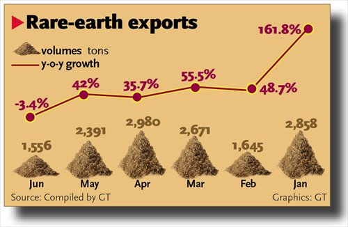 Coupled with strong growth in the domestic market, exports of rare-earth metals have also expanded rapidly.