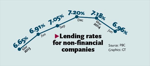 The weighted average lending rate offered to non-financial enterprises and other sectors was 6.96 percent in June, down 0.22 percentage points from March, but the problems of financing difficulties and high funding costs for small firms have become more obvious, according to the central bank.