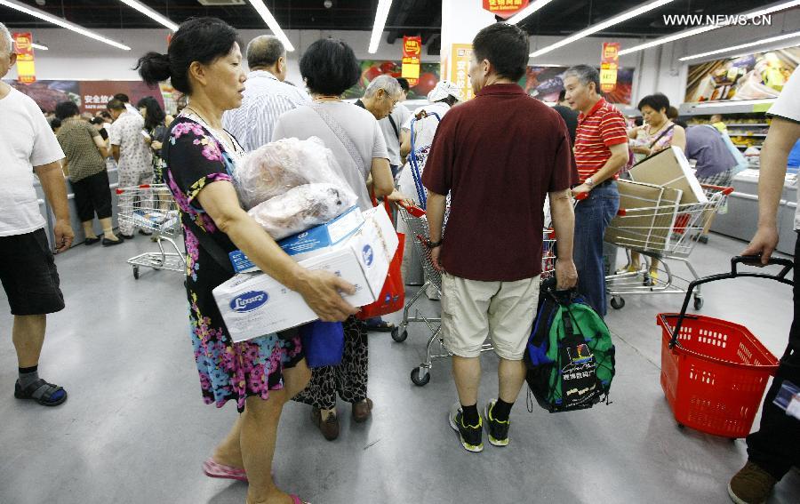 Citizens buy frozen food in the Waigaoqiao Direct Imported Goods market in the Shanghai Free Trade Zone (FTZ) in Shanghai, east China, Aug. 13, 2014. The Shanghai FTZ was launched in September 2013. It allows foreign businesses to invest in a series of sectors. [Photo: Xinhua/Fang Zhe]
