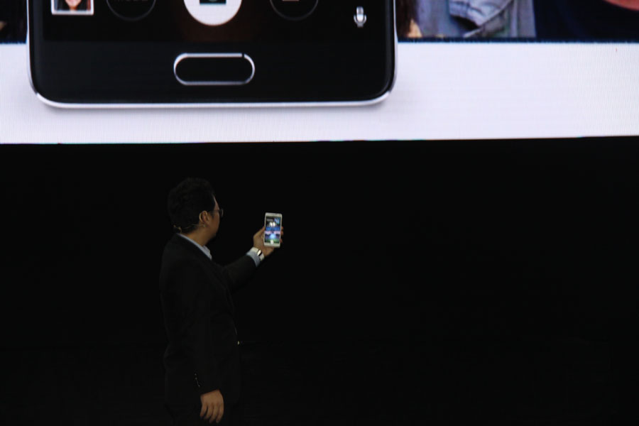 Samsung launches its Galaxy Note 4 smart phone and related products in Beijing on September 3rd, 2014.[Photo: CRIENGLISH.com/Wang Mengzhen]