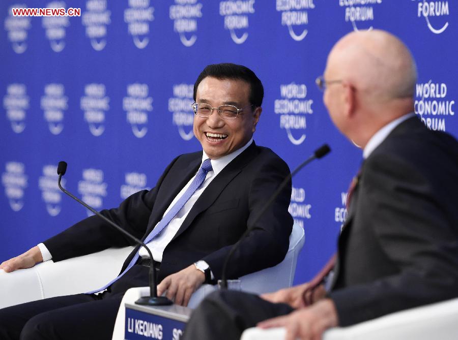 Chinese Premier Li Keqiang (L) talks with Klaus Schwab, founder and executive chairman of the World Economic Forum (WEF), during a meeting ahead of the Summer Davos forum in Tianjin Municipality, north China, Sept. 9, 2014. (Xinhua/Li Xueren) |