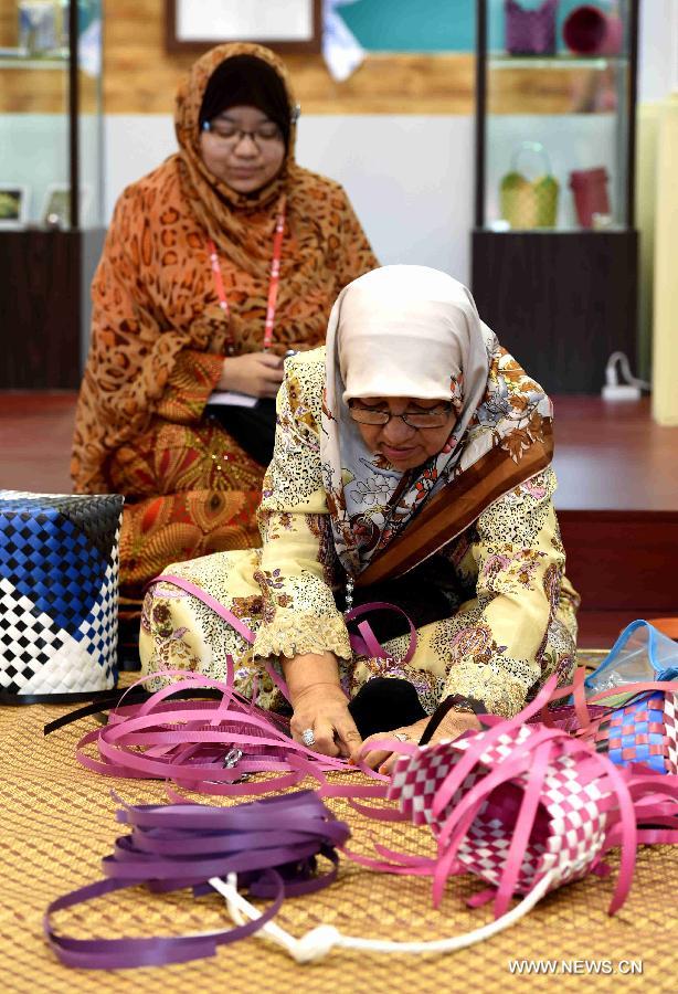 An artisan from Indonesia makes hand-woven baskets during the 11th China-ASEAN Expo (CAEXPO) in Nanning, capital of south China's Guangxi Zhuang Autonomous Region, Sept. 17, 2014. The 11th CAEXPO will be held here from Sept. 16 to 19. CAEXPO takes place annually in Nanning and is expected to promote free trade between China and the ASEAN countries. (Xinhua/Zhang Ailin)