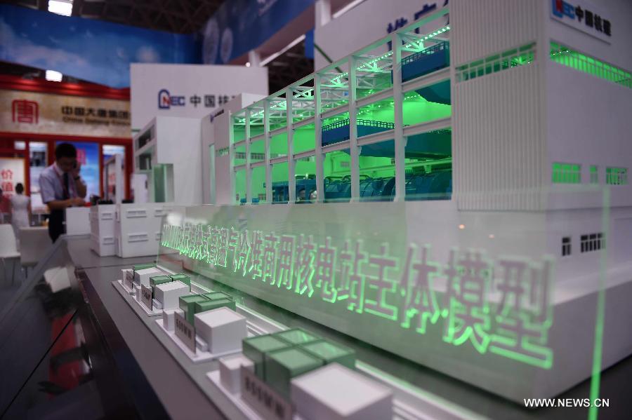 The model of a nuclear power station is displayed at the 11th China-ASEAN Expo in Nanning, capital of south China's Guangxi Zhuang Autonomous Region, Sept. 17, 2014. New energy and high tech equipments attracted both exhibitors and visitors from home and abroad during the 11th CAEXPO held in Nanning from Sept. 16 to 19. CAEXPO takes place annually in Nanning and is expected to promote free trade between China and the ASEAN countries. (Xinhua/Huang Xiaobang)