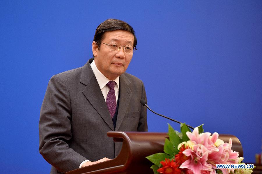 Chinese Finance Minister Lou Jiwei speaks at the signing ceremony of the Memorandum of Understanding on Establishing Asian Infrastructure Investment Bank (AIIB) in Beijing, capital of China, Oct. 24, 2014. Twenty-first Asian countries that are willing to join AIIB as founding members on Friday signed the Memorandum of Understanding on Establishing AIIB. (Xinhua/Li Xin) |