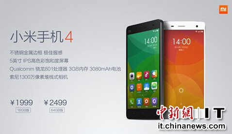 Mi 4, the latest model from Chinese smartphone maker Xiaomi [Photo: Chinanews.com] |