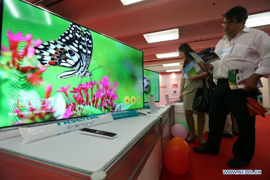 People visit the China Brand Show exhibition, in Sao Paulo, Brazil, on Nov. 18, 2014. The exhibition, which aims to introduce products by brands of China to Brazilian traders and clients is opening in Sao Paulo until Nov. 20. (Xinhua/Rahel Patrasso)