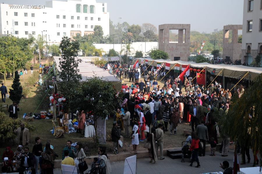 Pakistani people visit stalls during Pakistan Foreign Office Women's Association (PFOWA) Annual Charity Bazaar in Islamabad, capital of Pakistan, on Dec. 7, 2014. The one-day charity bazaar was organized by the PFOWA in collaboration with diplomatic corps in Islamabad on Sunday. (Xinhua/Ahmad Kamal) |