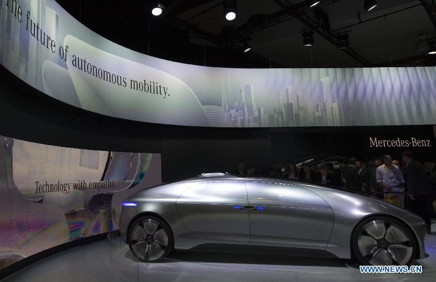 A Mercedes-Benz hybrid concept car is seen during the 2015 International Consumer Electronics Show (CES) in Las Vegas, the United States, on Jan. 6, 2015. (Xinhua/Yang Lei)