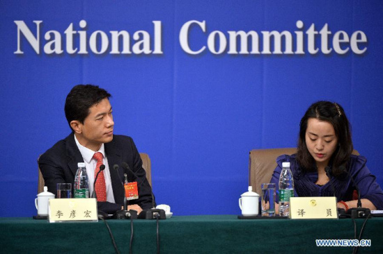 Robin Li is at a press conference during the third session of the 12th CPPCC National Committee in Beijing, capital of China, March 11, 2015. (Xinhua/Li Xin) |