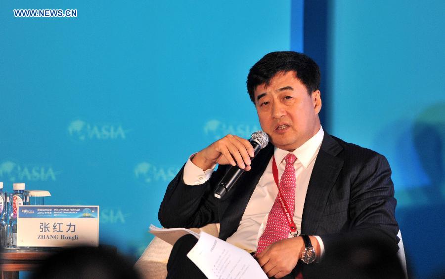 Zhang Hongli, vice president of Industrial and Commercial Bank of China, speaks at a sub-forum with the theme of "The Asset Management Boom: Innovation, Risks & Regulation" during the 2015 Boao Forum for Asia (BFA) in Boao, south China's Hainan Province, March 27, 2015. (Xinhua/Yang Guanyu) |
