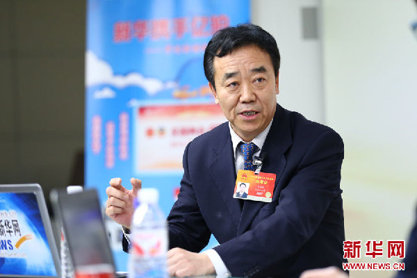 A NPC deputy and mayor of Wuzhong of northwestern China’s Ningxia Hui Autonomous Region gives an interview with Xinhuanet. (Photo source: Xinhuanet photo) |