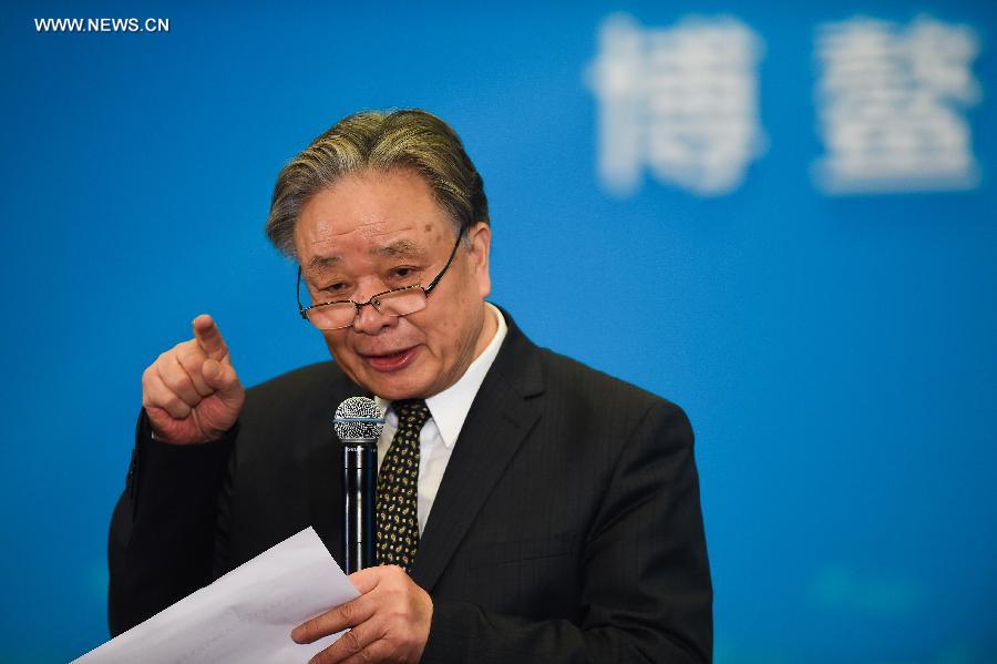 Bao Yujun, former vice-chairman of the All-China Federation of Industry and Commerce, speaks at a private sector roundtable discussion during the 2015 Boao Forum for Asia (BFA) in Boao, south China's Hainan Province, March 27, 2015. (Xinhua/Guo Cheng) |