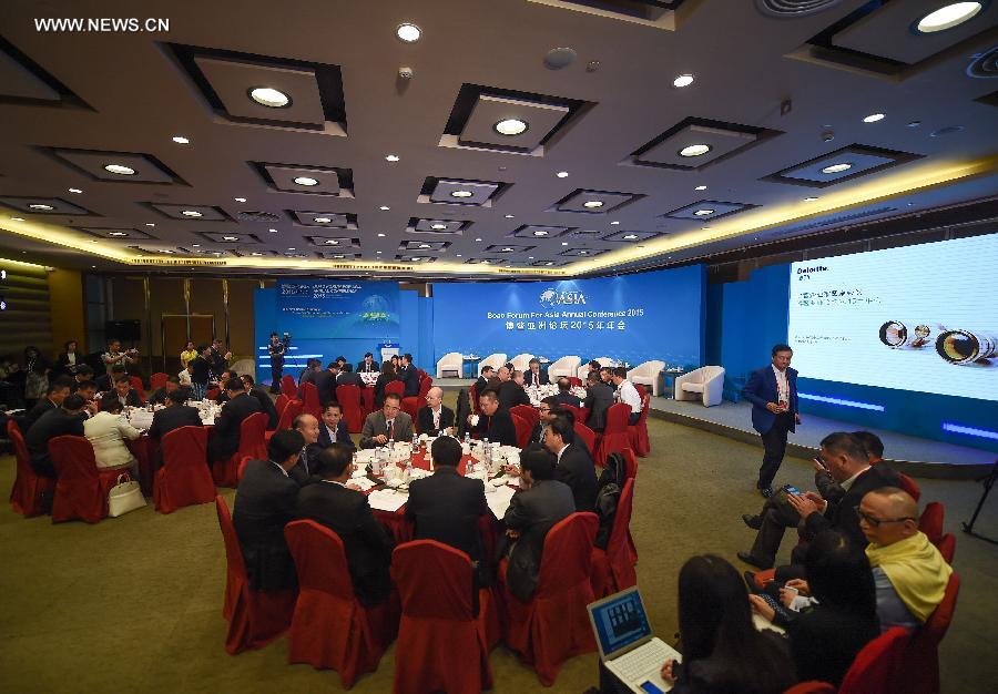 A private sector roundtable discussion is held during the 2015 Boao Forum for Asia (BFA) in Boao, south China's Hainan Province, March 27, 2015. (Xinhua/Guo Cheng)