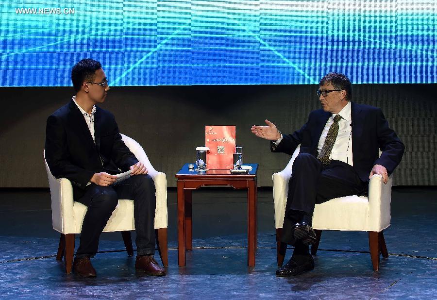 The Bill & Melinda Gates Foundation Co-Chair Bill Gates (R) receives an interview with China's Xinhua News Agency on the sidelines of the 2015 Boao Forum for Asia (BFA) in Boao, south China's Hainan Province, March 28, 2015. (Xinhua/Zhao Yingquan) |