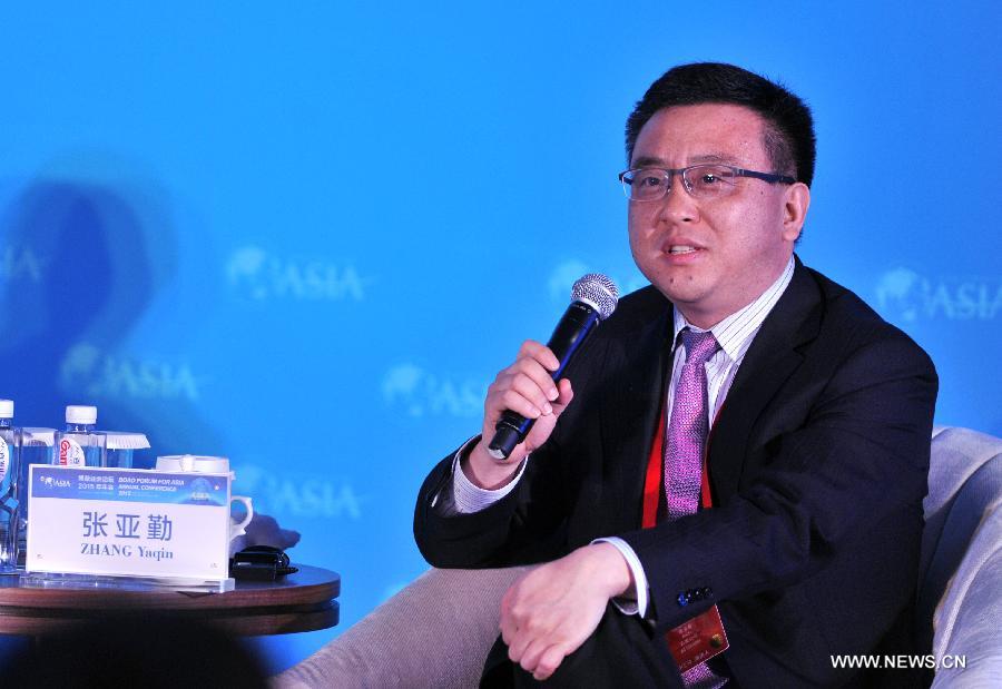 President of Baidu Zhang Yaqin speaks at the sub-forum with the theme "Doing Business the Internet Way" during the 2015 Boao Forum for Asia (BFA) in Boao, south China's Hainan Province, March 29, 2015. (Xinhua/Yang Guanyu)