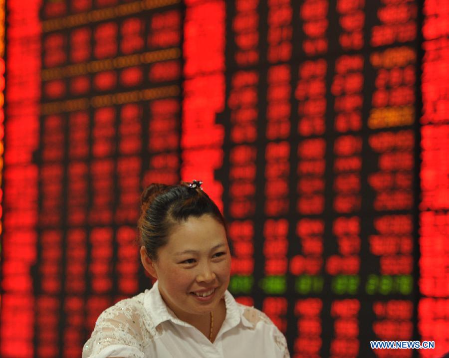 An investor follows information at a stock trading hall in Fuyang, east China's Anhui Province, May 8, 2015. Chinese shares rallied after a three-day losing streak on Friday with a key index tracking listed startup companies rising considerably. The benchmark Shanghai Composite Index rose 2.28 percent to finish at 4,205.92 points, while the Shenzhen Component Index gained 2.6 percent to close at 14,481.25 points. (Xinhua) |