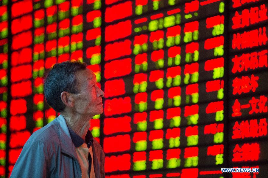 An investor follows information at a stock trading hall in Nanjing, capital of east China's Jiangsu Province, May 8, 2015. Chinese shares rallied after a three-day losing streak on Friday with a key index tracking listed startup companies rising considerably. The benchmark Shanghai Composite Index rose 2.28 percent to finish at 4,205.92 points, while the Shenzhen Component Index gained 2.6 percent to close at 14,481.25 points. (Xinhua/Su Yang) |