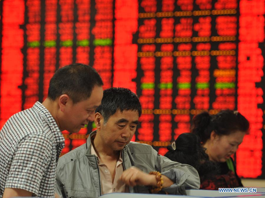 Investors follow information at a stock trading hall in Fuyang, east China's Anhui Province, May 8, 2015. Chinese shares rallied after a three-day losing streak on Friday with a key index tracking listed startup companies rising considerably. The benchmark Shanghai Composite Index rose 2.28 percent to finish at 4,205.92 points, while the Shenzhen Component Index gained 2.6 percent to close at 14,481.25 points. (Xinhua) |