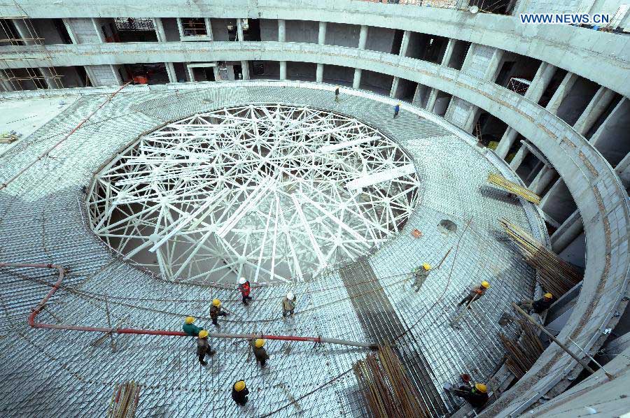 Laborers work at the construction site of the Lanzhou comprehensive bonded zone in Lanzhou, capital of northwest China's Gansu Province, May 8, 2015. The project is expected to be completed by the end of June. (Xinhua/Fan Peishen)