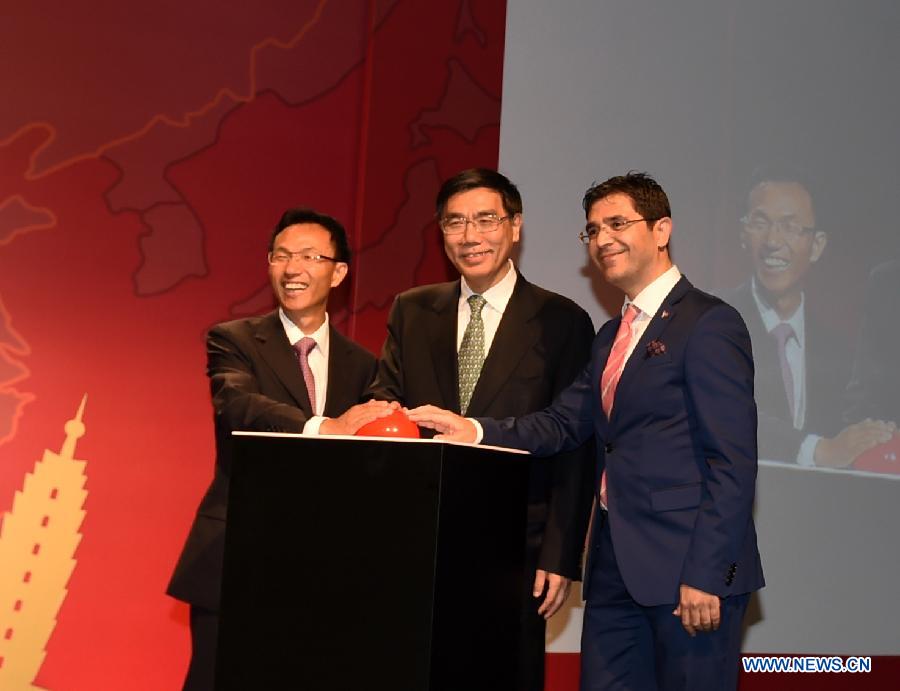 Chinese Ambassador to Turkey Yu Hongyang (L), Industrial and Commercial Bank of China Limited (ICBC) chairman Jiang Jianqing (C) and vice governor of Istanbul Province Ismail Gultekin attend the inauguration ceremony of the acquisition of Tekstilbank by ICBC in Istanbul, Turkey, on May 25, 2015. ICBC, world's largest bank, said here on Monday that it completed the acquisition of 75.5 percent stake in Tekstilbank from Turkish GSD Holding, making it the first business institution operated by a Chinese bank in the country. (Xinhua/He Canling) |