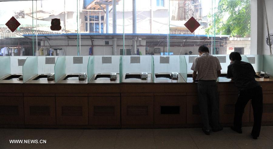 Investors look through stock information at a trading hall in a securities firm in Haikou, capital of south China's Hainan Province, June 19, 2015. Chinese stocks plunged on Friday, with the benchmark Shanghai Composite Index diving 6.42 percent, to finish at 4,478.36 points. The Shenzhen Component Index plunged 6.03 percent, to close at 15,725.47 points. (Xinhua/Zhao Yingquan)