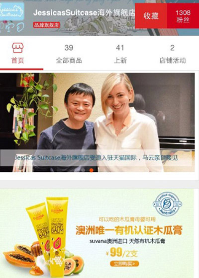 A screenshot from Jessica Rudd's online Tmall store includes a picture with Jack Ma, chairman of the Alibaba Group. [Photo/Weibo]