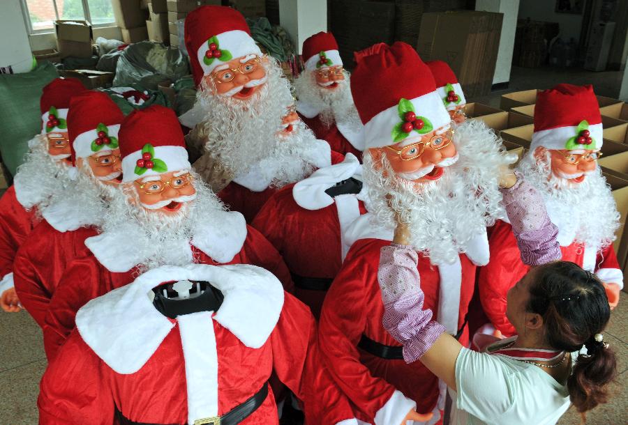 Known as the world’s largest distributing center of Christmas decorations, Yiwu city of east China’s Zhejiang province has entered the peak season for manufacturing and selling Christmas tat. At present more than 800 enterprises and international shopping malls are busy processing orders coming from all over the word. According to Yiwu Christmas Products Industry Association, the total export volume of Christmas products in 2015 will increase by 5 percent or 10 percent year on year.