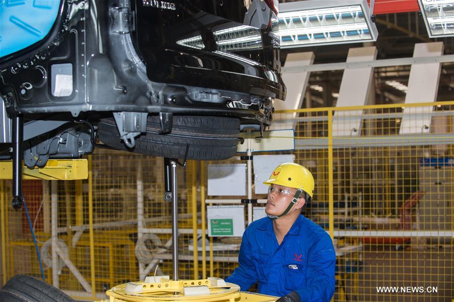 A local worker works in the factory of China's automaker Wuling Motors in Cikarang, Indonesia, on July 11, 2017. China's automaker Wuling Motors officially started production Tuesday in its newly-built facility in Indonesia. (Xinhua/Du Yu)