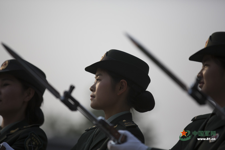 A set of photos released by www.81.cn captures the rarely seen training scenes of the PLA's first female honor guard, whose debut on Monday immediately grabbed public attention. (Photo/Wan Xiaojun)