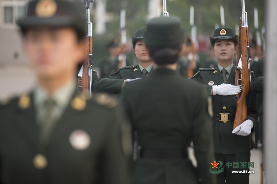 A set of photos released by www.81.cn captures the rarely seen training scenes of the PLA's first female honor guard, whose debut on Monday immediately grabbed public attention. (Photo/Wan Xiaojun)