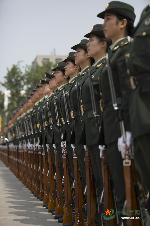 A set of photos released by www.81.cn captures the rarely seen training scenes of the PLA's first female honor guard, whose debut on Monday immediately grabbed public attention. (Photo/Wan Xiaojun)