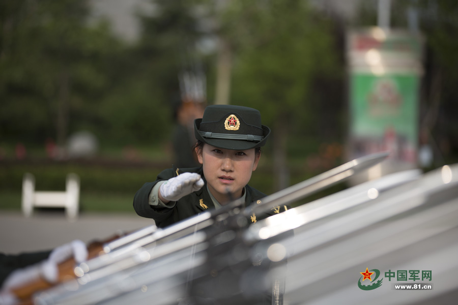 A set of photos released by www.81.cn captures the rarely seen training scenes of the PLA's first female honor guard, whose debut on Monday immediately grabbed public attention. (Photo/Wan Xiaojun)