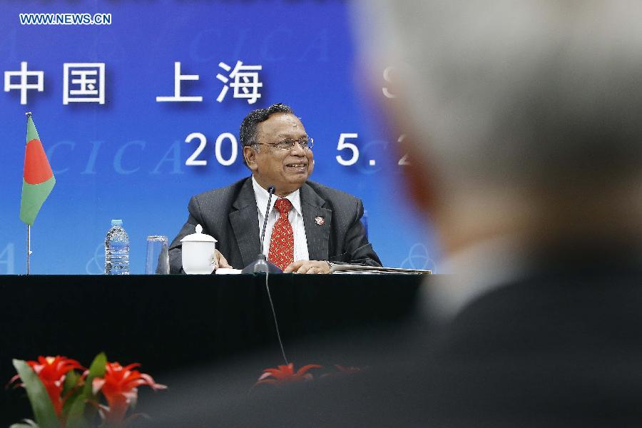 A.H. Mahmood Ali, minister of foreign affairs of Bangladesh, addresses a press conference after signing a memorandum of understanding about Bangladesh's becoming a member of the Conference on Interaction and Confidence Building Measures in Asia (CICA) in Shanghai, east China, May 20, 2014. (Xinhua/Zhang Yuwei) |