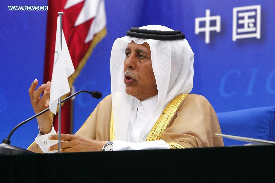 Qatari Deputy Prime Minister Ahmed bin Abdullah bin Zaid Al-Mahmoud attends a signing ceremony about Qatar becoming a member of the Conference on Interaction and Confidence Building Measures in Asia (CICA) in Shanghai, east China, May 20, 2014. Qatar is going to be the 25th member of CICA. (Xinhua/Lyu Xun) |