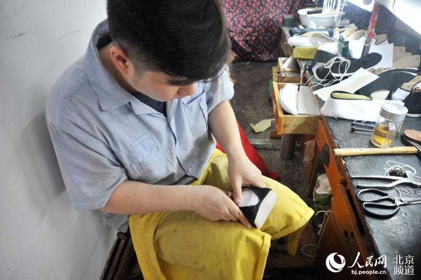 The last procedure is to turn the shoes inside-out which requires the shoemaker to finish in 2 to 5 seconds.(bj.people.cn)