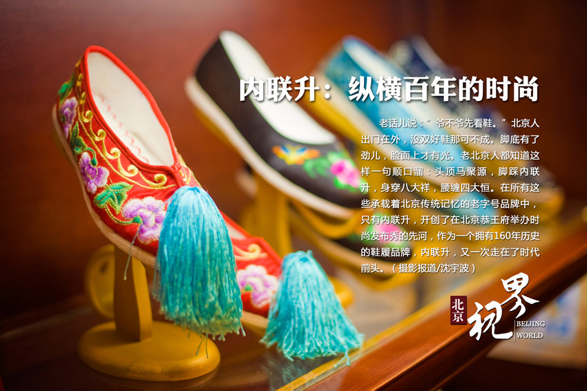 Located in the busy Dashila business street in Beijing, Neiliansheng shoes shop was opened in 1853 by Zhao Ting from Tianjin. At the beginning, the shoes shop was specialized in making court boot for officials. (bj.people.cn)