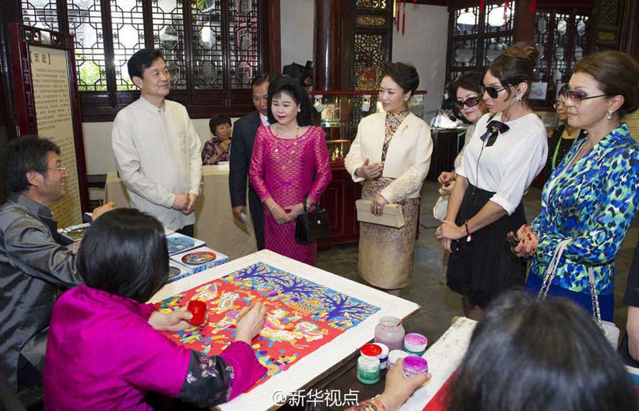 As Asia's regional leaders were busy on Wednesday with a security summit in Shanghai, Chinese first lady Peng Liyuan invited her counterparts to enjoy China's traditional arts and culture in the centuries-old Yuyuan Garden.