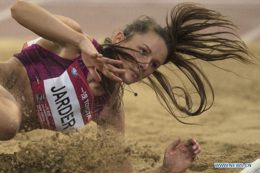 Erica Jarder of Sweden competes during the women's long jump at the IAAF World Challenge Beijing, China, May 21, 2014. Erica Jarder took the second place of the event with 6.49m. (Xinhua/Fei Maohua)