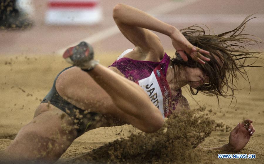 Erica Jarder of Sweden competes during the women's long jump at the IAAF World Challenge Beijing, China, May 21, 2014. Erica Jarder took the second place of the event with 6.49m. (Xinhua/Fei Maohua)